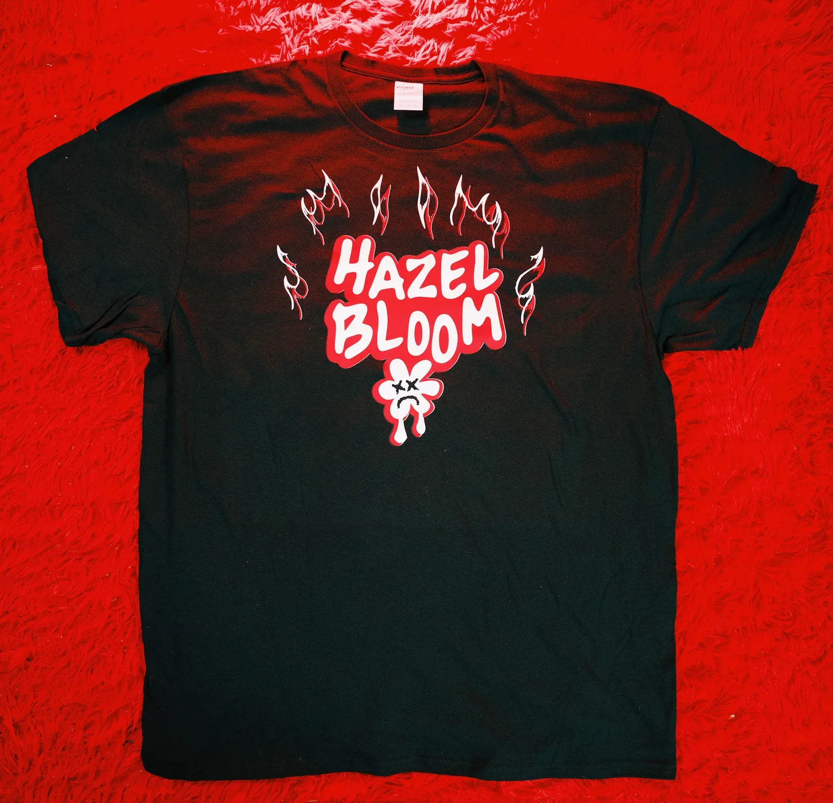 The Hazel Bloom apparel collection was designed to capture the band’s bold, energetic identity while offering fans unique, wearable merchandise. Each piece combines expressive typography with custom illustrations, including flames, roses, ghost imagery, and a playful flower character, all brought to life through a high-contrast palette of black, red, and white. The designs were carefully crafted to ensure clarity and impact in screen printing, making them production-ready and visually striking on both t-shirts and hoodies.